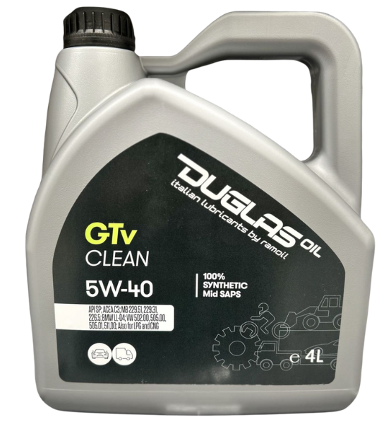 Το Duglas Oil GTv CLEAN C3 5W-40 είναι 100% συνθετικό λιπαντικό με χαμηλή περιεκτικότητα σε τέφρα (MID SAPS), ιδανικό για σύγχρονους κινητήρες βενζίνης, diesel και LPG, προστατεύοντας τον κινητήρα και τα συστήματα εκπομπών.