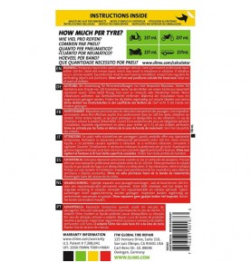 Το Slime Tire Sealant αποτελεί ένα ασφαλές και εύκολο στη χρήση στεγανωτικό επισκευής έκτακτης ανάγκης. Είναι ένα μίγμα φιλικό προς το περιβάλλον το οποίο αποτελείται από ίνες, συνδέσμους, πολυμερή σώματα, και παγωτικά στοιχεία. Σφραγίζει άμεσα το πέλμα του ελαστικού που διαθέτει οπές έως και 6mm χρησιμοποιώντας την τεχνολογία Fibro-Seal. Χρησιμοποιήστε το Slime Tire Sealant για να επιδιορθώσετε τα ελαστικά σε οχήματα αυτοκινητόδρομων μικρών τροχών, όπως οι μοτοσικλέτες, τα ποδήλατα, και τα scouters.