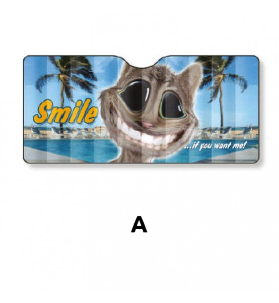Ηλιοπροστασία αλουμινίου με σχέδιο γάτα με τρελά μάτια.