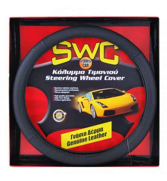 Κάλυμμα τιμονιού δερμάτινο σε μαύρη απόχρωση για τιμόνια με διάμετρο 36cm. Προσφέρει σταθερό κράτημα για άνετη οδήγηση και ανανεώνει το εσωτερικό του αυτοκινήτου σας.