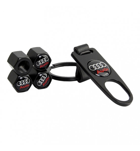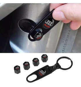 Καπάκια Βαλβίδων Αυτοκινήτου Με Μπρελόκ Audi Μαύρο 5 Τεμάχια