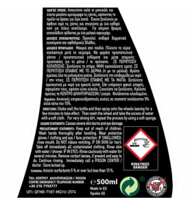 Ειδική σύνθεση για γρήγορο και αποτελεσματικό τρόπο καθαρισμού της ζάντας. Το προϊόν όταν παίρνει ένα βαθύ κόκκινο χρώμα σημαίνει το τέλος του καθαρισμού και πρέπει να το ξεπλύνετε. Ασφαλές για κάθε χρήση.