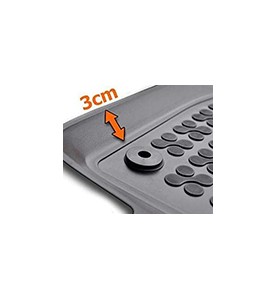 Εξαιρετικά ανθεκτικά και ποιοτικά πατάκια, κατασκευασμένα από μαλακό οικολογικό λάστιχο, χωρίς ανεπιθύμητες μυρωδιές, με ψηλό περιμετρικό χείλος 3 εκατοστά, για μέγιστη προστασία και καθαριότητα του εσωτερικού του αυτοκινήτου σας από χώματα, λάσπες και νερά. Η συσκευασία περιλαμβάνει πιαστράκια (κουμπώματα) για το δάπεδο για τα δύο μπροστινά πατάκια.