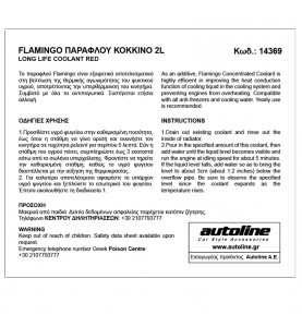 Το Κόκκινο Αντιψυκτικό Flamingo είναι εξαιρετικά αποτελεσματικό στη βελτίωση της λειτουργίας της θερμικής αγωγιμότητας του υγρού στο σύστημα ψύξης, αποτρέποντας τους κινητήρες από την υπερθέρμανση. Συμβατό με όλα τα αντιψυκτικά και το υγρό ψύξης. Με αντισκωριακές ιδιότητες.