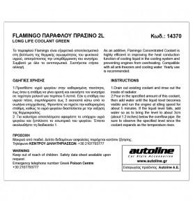 Το Πράσινο Παραφλού Flamingo είναι εξαιρετικά αποτελεσματικό στη βελτίωση της λειτουργίας της θερμικής αγωγιμότητας του υγρού στο σύστημα ψύξης, αποτρέποντας τους κινητήρες από την υπερθέρμανση. Συμβατό με όλα τα αντιψυκτικά και το υγρό ψύξης. Με αντισκωριακές ιδιότητες.