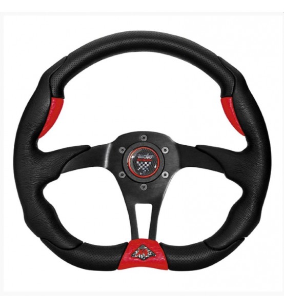 Τιμόνι Αυτοκινήτου Σπορ Βαθύ Suede 35cmØ Χρώμα Μαύρο με Κόκκινη Λωρίδα