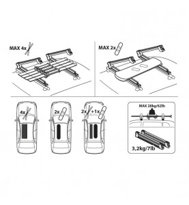Στερεά ανθεκτική μαζική κατασκευή με μεγάλη ικανότητα φόρτωσης! Δυνατότητα μεταφοράς 4 ζευγών σκι ή 2 snowboard